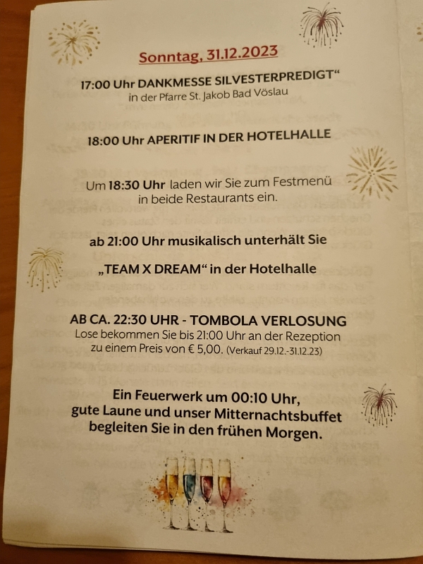 Dieses Jahr haben wir uns dazu entschlossen, den Jahreswechsel in einem Kurhotel der Hotelgruppe ‚VIVEA‘ in Bad Vöslau zu verbringen.