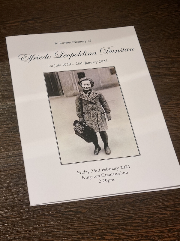 Am Freitag, den 22. Februar habe ich mich nach London, zur Trauerfeierlichkeit für meine Schwester Elfie, begeben.