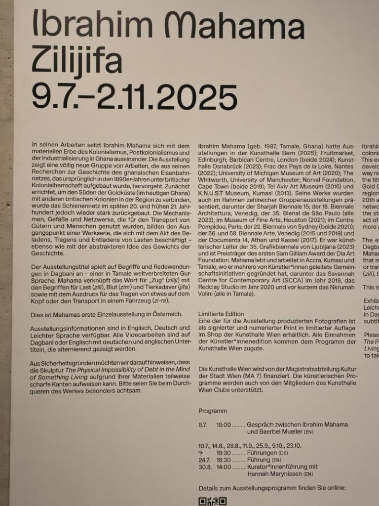 Kunsthalle Wien Posted on 15. September 20255. Dezember 2025 By willi Besuche 2025 KUNSTHALLE WIEN MUSEUMSQUARTIER 20250318 – Radical Software20250828 – Nora Turato20250911 – Nicola L.20250911 – Ibrahim Mahama Zilijifa20251021 – Sophie von Hellermann20251128 – Guan Xiao20251128 – Richard Hawkins KUNSTHALLE WIEN KARLSPLATZ 20251204 – Jonida Laci & Luize Nezberte Museen
