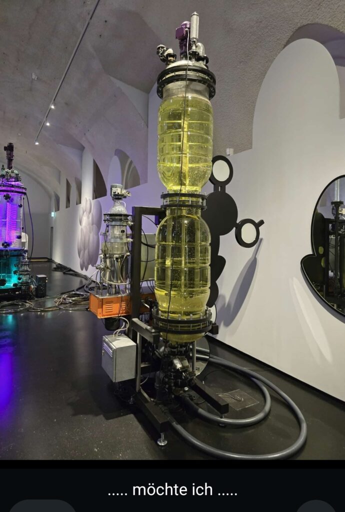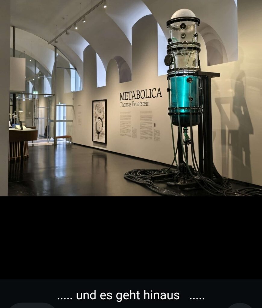 METABOLICA führt in die Fabrik des Lebens und erzählt in fünf Kapiteln eine molekulare Geschichte über Stoffwechselkreisläufe – von der industriellen Revolution bis zur Gegenwart und Zukunft, vom Walfang und der Petromoderne bis zu aktuellen und zukünftigen Szenarien der Bioökonomie. Algen und Bakterien werden zu künstlerischen Kollaborateuren, die durch mikrobiologische Verfahren eine neue ästhetische und bildnerische Praxis erschließen, die Bilder, Formen und Symbole durch „Metabole“ erweitert: Symbole repräsentieren, Metabole handeln und performieren reale Prozesse.
