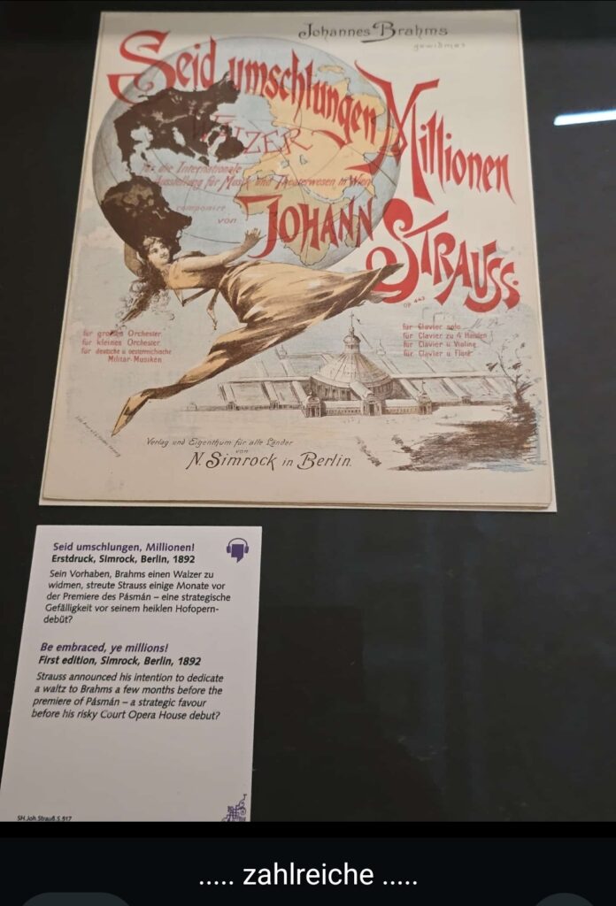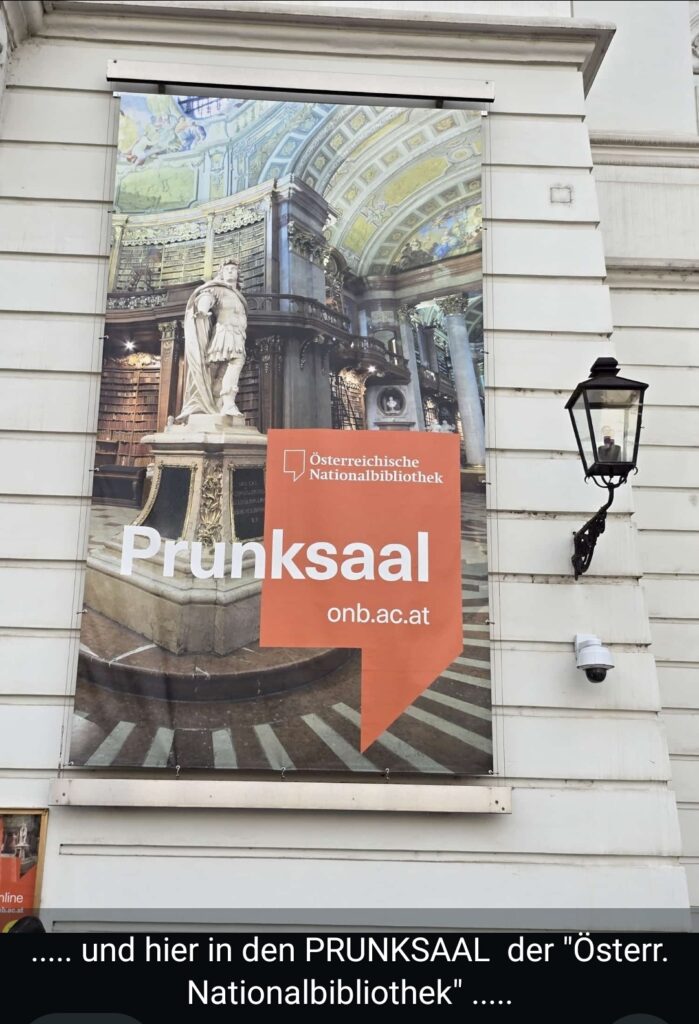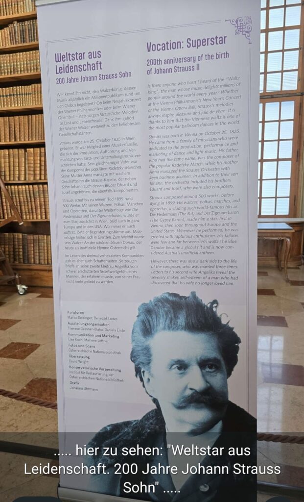 Auch im ‚Prunksaal‘ der ‚Österreichischen Nationalbibliothek‘ hat man eine kleine, recht feine Ausstellung zum ‚Johann Strauss Jahr‘ gestaltet.